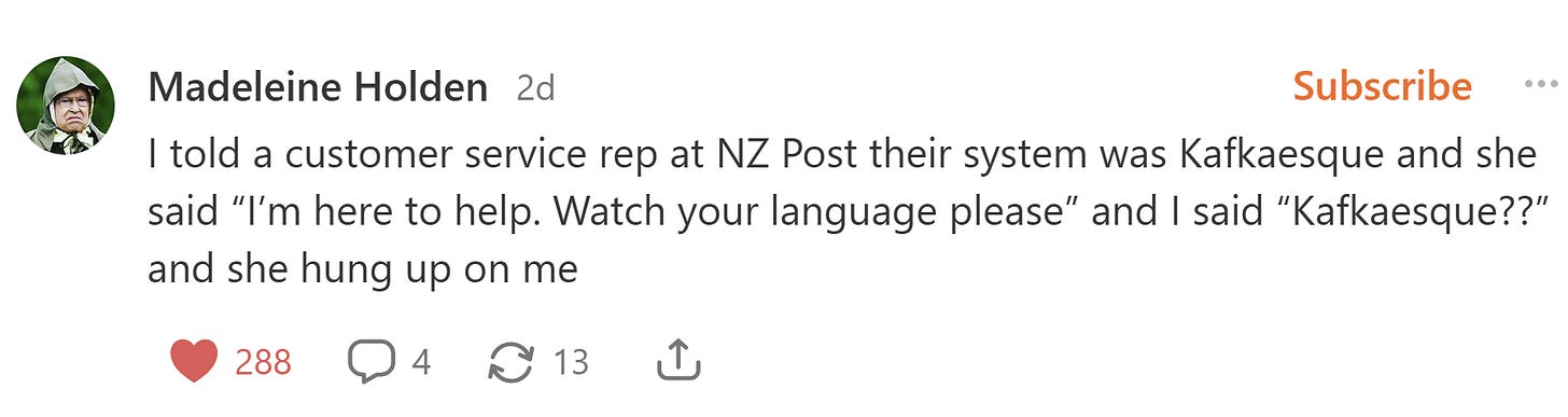 The humor and pathos, Janet. This is where my mouth dropped open: